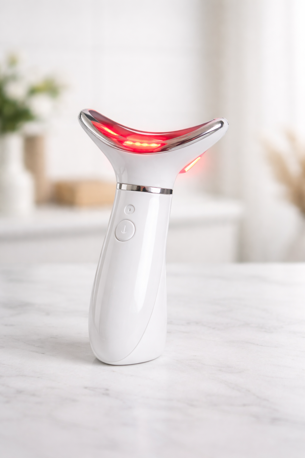 Uppleva kraften i trippelverkande ljusterapi och EMS-mikroström. Se hur GlowNordic effektivt stramar upp huden, reducerar fina linjer och definierar käklinjen på bara några minuter om dagen.